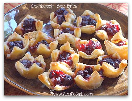 These 3-ingredient Cranberry Brie Bites are so incredibly easy to assemble. Baked up, they're impressive and delicious. Photograph included.