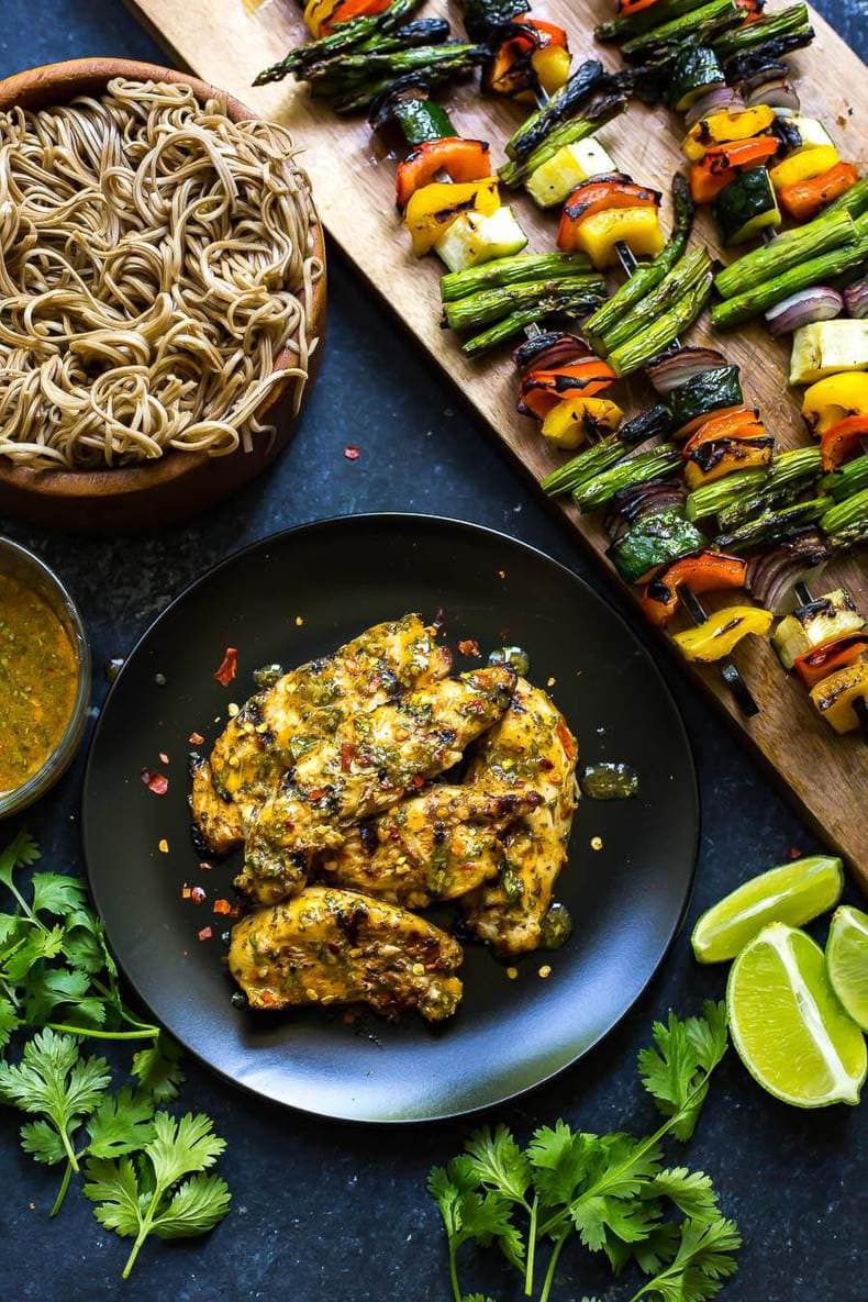 These Cilantro Lime Chicken Soba Noodle Bowls with grilled veggie are a deliciously easy gluten-free dinner - and the marinade for the chicken doubles as a super easy dressing!