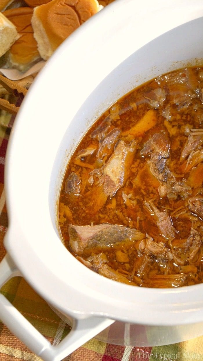 BBQ pulled pork crockpot recipe that has very few ingredients and is great over rice, in a bun, or f ...