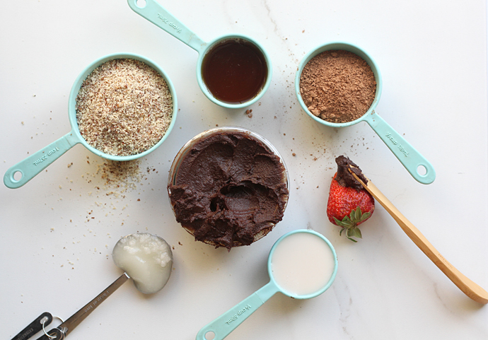 Sometime a couple years back, I decided to try Nutella, and we quickly grew more than a little hooked. Since it was "hazelnut" spread, I naively figured that since it was nut based, it was a delicious, too good to be true healthy treat. I never even bothered looking at the ingredients, and when I began paying closer attention to those ingredient labels, I was dumbfounded to find that hazelnuts, weren't even the first or second ingredient, but instead, sugar and palm oil came first. Not only did it list sugar as its main ingredient, but Nutella also contained soy lecithin and vanillin, an artificial flavor. Turns out that chocolaty spread was indeed too good to be true. We finished our last jar and said good bye. I'd like to say we never looked back, but Syd has since longed for Nutella toast, and makes sure I know every so often, that he still really wishes we could eat Nutella. Sometimes making healthier choices leave me feeling like a real asshole of a parent. I looked into making my
