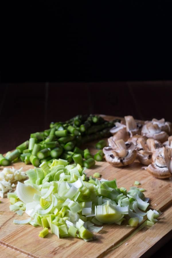 A simple and delicious recipe for one-pot shrimp linguine with spring vegetables. Everything cooks together in one pot, meaning more flavor, and less dishes!
