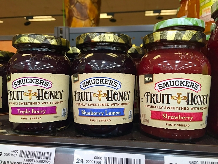 Great recipe using Smucker's Fruit and Honey spread found in the jelly aisle. How to make peanut butter and jelly thumbprint cookies with kids.