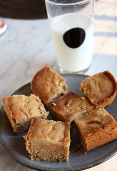 Thick and chewy peanut butter pretzel blondies! This easy-to-make dessert recipe comes together in m ...